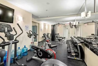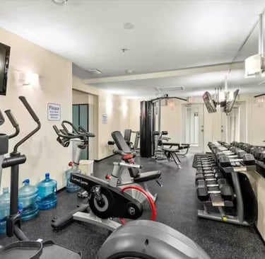 Stay on track with your fitness routine in Glacier Lodge's fully equipped gym, open from 7 am to 10 pm.